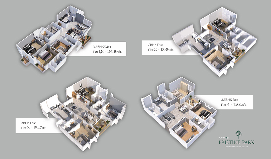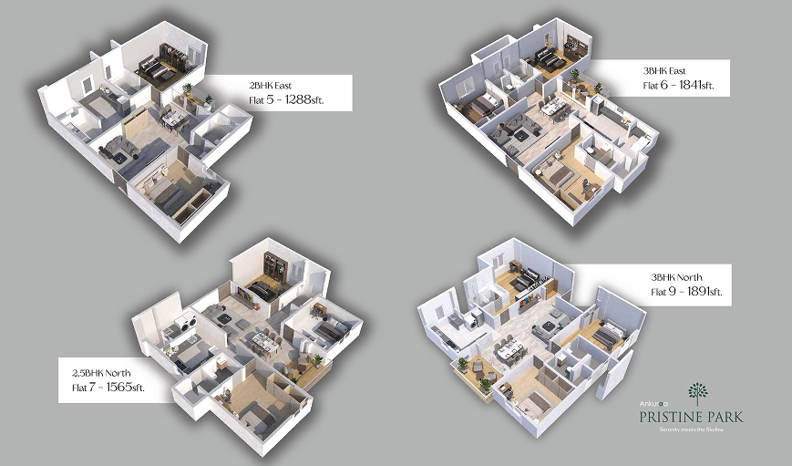 The apartments at Ankuraa Pristine Park range from 1288 sq. ft. to 2439 sq. ft., offering a variety of options for families looking for spacious homes in Whitefield.