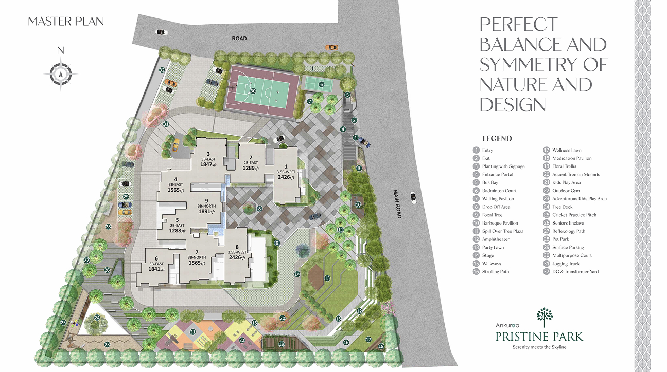Project Overview Pristine Park is more than a residence—it is a thoughtfully crafted lifestyle shaped by the harmony of city energy and nature’s calm. With 81% open space dedicated to greenery, landscaped gardens, and eco-conscious infrastructure, every element is designed to bring balance and ease to everyday living.